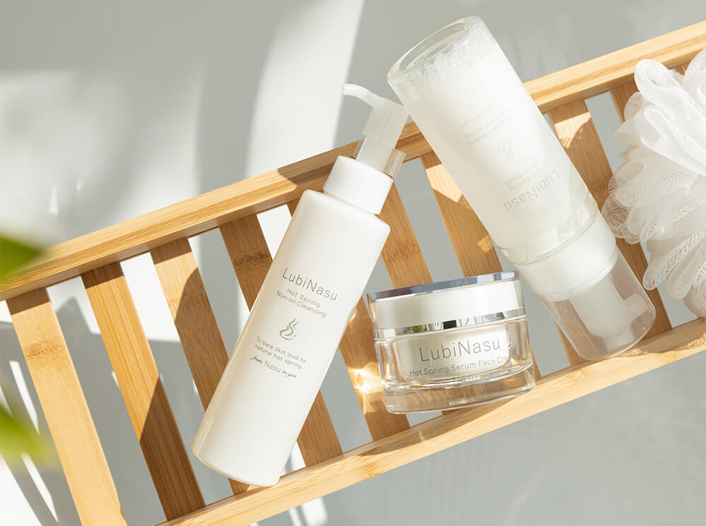 そんな「美肌の湯」をたっぷり使用したスキンケアで、「自宅にいながら温泉上がりのようなツヤ肌を是非、多くの皆さまにも体感していただきたい」という思いから”LubiNasuルビナス”は生まれました。